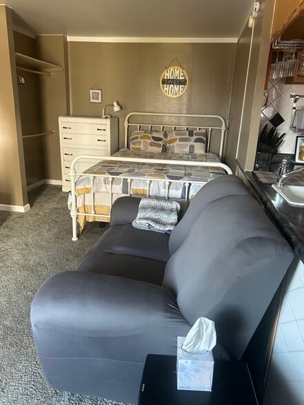 Very nice clean totally furnished apartment with nice deck. There is a very comfortable Tempur-pedic adjustable bed.