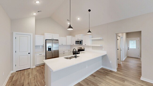 Step into this stylish home with a smart, open floor plan designed for modern living. The entry offers easy access to the mud room, garage, and a spacious bedroom for guests or family. The heart of the home features a chef’s kitchen flowing into a bright living area with a versatile home office space. Down the hall, you’ll find a well-appointed bathroom and access to the fully fenced backyard, ideal for kids, pets, and entertaining. The primary suite provides a private retreat with a walk-in closet and a thoughtfully designed bathroom, blending comfort, convenience, and charm throughout.