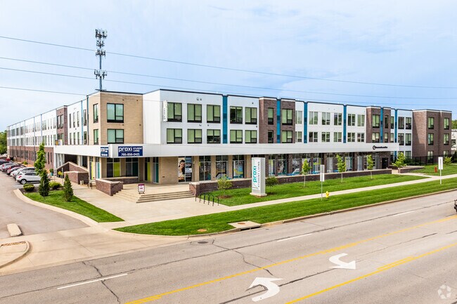 Proxi Lawrence is an off-campus student apartment community located in Lawrence, KS, near The University of Kansas. Our community features fully furnished studio, one, two, three, and four-bedroom apartments. Our pet-friendly fully furnished studio, one, two, three, and four-bedroom apartments near KU feature stainless steel appliances, wood-style plank flooring, a dishwasher and microwave, in-unit washer and dryer, Wi-Fi, memory foam mattress and plenty more!