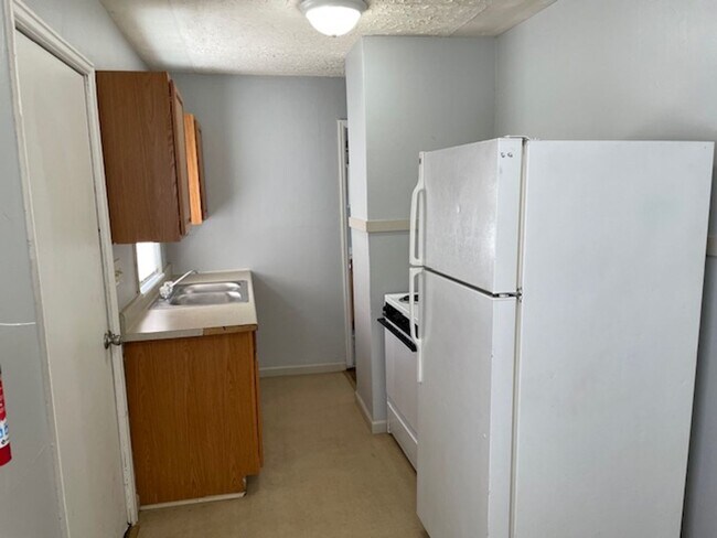 This inviting 1-bedroom, 1-bath unit is nestled within a quiet 4-plex, perfect for anyone seeking comfort and convenience. The open living room flows into a cozy eating area just off the galley kitchen, which comes equipped with a refrigerator and oven/range—ready for all your culinary needs. The unit also features a linen closet, providing additional storage space. You'll enjoy the ease of having an assigned parking space. With its efficient layout and thoughtful design, this apartment offers a relaxing place to call home.
