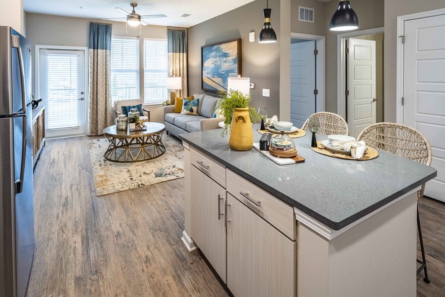 With ten distinctive floorplans, Tapestry Turfway offers 1, 2, and 3-bedroom apartment homes and townhomes. Each apartment home features dynamic interiors with state-of-the-art stainless steel Energy Star appliances. Modern textures and design are punctuated with chef-inspired kitchens, custom kitchen cabinetry, beautiful quartz countertops, and a contemporary subway tile backsplash. These show-stopping kitchens also feature large undermount sinks with a gooseneck faucet and eat-in kitchen islands with alluring pendant lighting. Lavish comforts and finishes continue throughout the residences, including abundant closet spaces, wood-designed plank flooring, double-sink vanities, soaker-style garden bathtubs, lavish stand-alone showers, and so much more!
