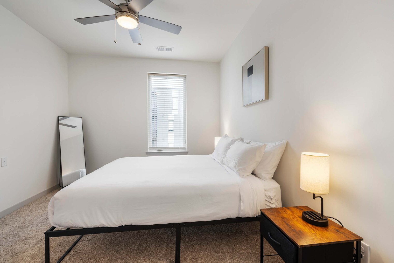 Feel at home in this cozy apartment located in Louisville's East Market District. This apartment is suitable for a family, group of friends, or business travelers. This apartment features soaring 9-foot ceilings, stainless appliances, custom cabinetry, elegant tiling, and modern decor. The fully equipped kitchen, smart TV with streaming apps, and complimentary coffee provide all the comforts of home. Gym, pool, pet park, clubhouse, and lounge access are included. A pet fee between $100 and $300 will be collected separately, based on the length of your stay. Maximum of 2 pets (40lbs combined) are allowed, but Pit Bulls and Bull Mastiffs [similar breed] are not permitted. Locals call the hip, affluent East Market District as NuLu and the best place to stay in Louisville. This neighborhood is a dining hub with eateries spanning upscale New American cuisine to casual BBQ, plus stylish bars pouring craft beer and bourbon. Shops sell vintage clothing, women’s fashion, gourmet eats, or restored furniture. Contemporary galleries stay open late for the monthly First Friday Hop street party, with art shows, live music, shopping, and street food. The building is a simple on-off the highways. For local excursions, hop on the LouLift – a free, electric bus fleet with onboard Wi-Fi that services 4th Street, downtown shopping district, and beyond. Uber and Lyft are never far. For the bold, the use of the dockless scooters is encouraged. This is a smoke-free environment, and any sign of smoking is a violation of the stay agreement, which may result in immediate termination and recovery fees beginning at $500. There is a $500 penalty for removing smoke detectors and a $200 penalty for lost key fobs. No outside guests are allowed without permission, and only one towel per guest per stay is provided. Guests must agree not to disturb neighbors at all times during the stay and must observe quiet hours from 9 pm to 8 am each day. The home is proactively monitored with decibel sensors for compliance with this noise policy. Check-in is at 4 PM, and check-out is at 11 AM, with a $75/hr late fee. No weapons or drugs are allowed, and police will be called for violating this rule. A valid photo ID is required to complete the booking. Minimum age requirement of primary person booking should be 22 years old for out of town guests and 25 years old for local guests. To abide by all legal requirements and HOA rules, you will be asked to provide a copy of your official government-issued photo ID, confirm your contact information, and pass through our verification portal. Failure to provide these documents will result in a cancellation and denied entry. Registration Number: LIC-STL-25-00962 [SI]