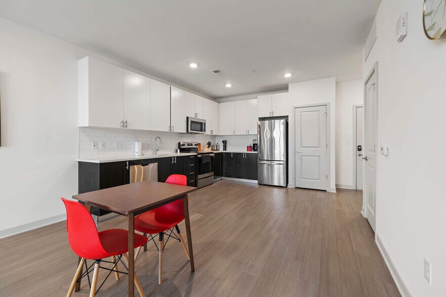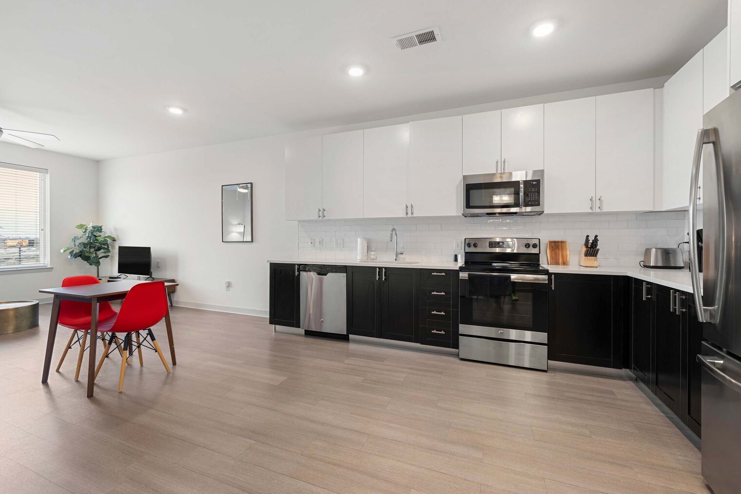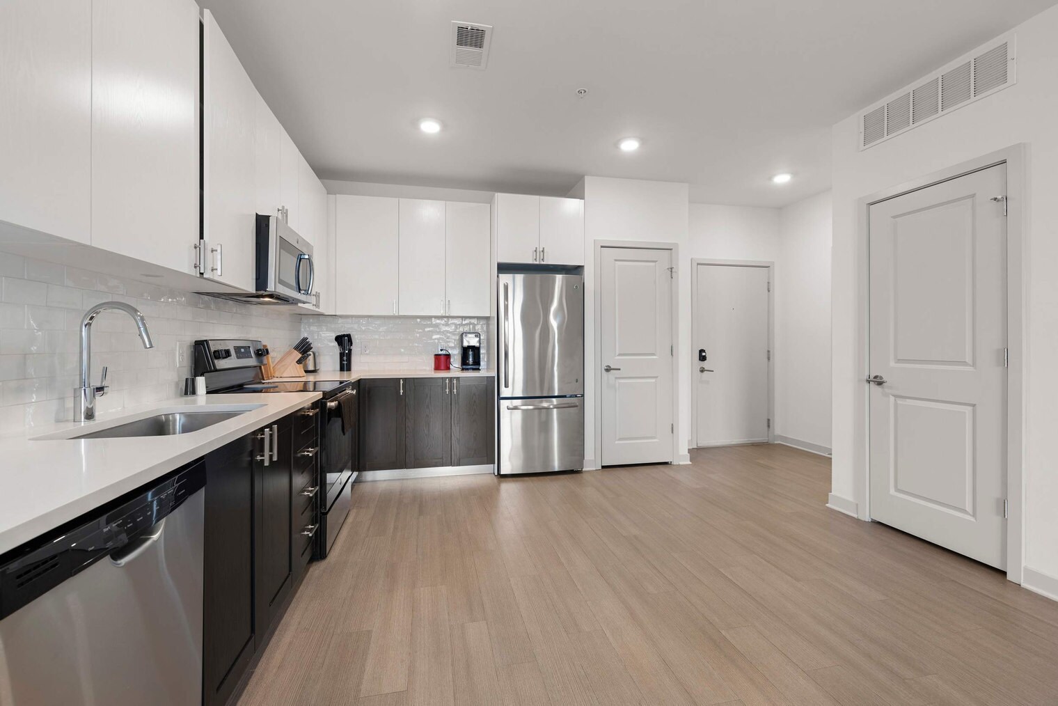 Feel at home in this condo, presented by our trusted partner, in Louisville's East Market District. This apartment features 9ft ceilings, stainless appliances, custom cabinetry, elegant tiling, and modern decor. This cozy apartment is suitable for a family, group of friends, or business travelers and has all of the amenities necessary to enjoy your stay. Great amenities include a fully equipped kitchen, smart TV with streaming apps installed, complimentary coffee, fitness center, lobby, lounge, library, and pet park with washing station. Gym, pool, pet park, clubhouse, and lounge access are included. Locals call the hip, affluent East Market District as NuLu and the best place to stay in Louisville. This neighborhood is a dining hub with eateries spanning upscale New American cuisine to casual BBQ, plus stylish bars pouring craft beer and bourbon. Shops sell vintage clothing, women’s fashion, gourmet eats, or restored furniture. Contemporary galleries stay open late for the monthly First Friday Hop street party, with art shows, live music, shopping, and street food. The partner does not permit smoking of any kind within or outside of the apartment, including balconies, patios, or common and parking areas. Any sign of smoking is a violation of the stay agreement, which may result in immediate termination and recovery fees beginning at $500. Quiet hours are between 9 PM and 8 AM. There is a $200 penalty for removing smoke detectors and a $200 penalty for lost key fobs. No outside guests are allowed without permission. One towel per guest is provided per stay. There is a maximum of 2 pets allowed, with a combined weight of 40lbs, excluding Pit Bulls and Bull Mastiffs or similar breeds. An additional pet fee of $100-300 will be collected separately, based on stay length. A pet fee may be charged for guests traveling with an emotional support animal. Check-in is at 4 PM and check-out is at 11 AM, with a late fee of $75 per hour. Registration Number: LIC-STL-25-00961 [SI]