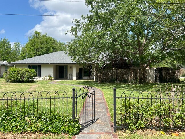Beautiful spacious home across from Goodwood Park on Esplanade. Three bedrooms, two full baths and two half baths. This home is located on a large lot with courtyard, parking bay and front porch overlooking Goodwood Park, a large back patio and double carport. Upon entering the home you will notice the amazing wood floors and large open rooms all featuring several windows letting in natural light. The formal living and dining room in the front of the home have wall units with storage and shelving. From one end you enter the great room or family room and the other end brings you to the kitchen. The great room has large vaulted, beamed ceilings, fireplace, back wall of windows and French doors leading you to the back patio. The kitchen offers counter and cabinet space, custom chopping block, gas range, stainless dishwasher, built in stainless oven, stainless under-mount dual stainless sink with pull down kitchen faucet with sprayer. The microwave and refrigerator remain but are not warranted. the large breakfast area located just off the kitchen has large plate windows overlooking the back patio. There is a laundry room with more built-ins and a half bath (washer and dryer to remain) and a separate storage room at the back door. There are two primary suites with en suite bathrooms. The back primary bedroom has French doors leading to the back patio. Also the bathroom has separate stand up shower and soaking tub.
