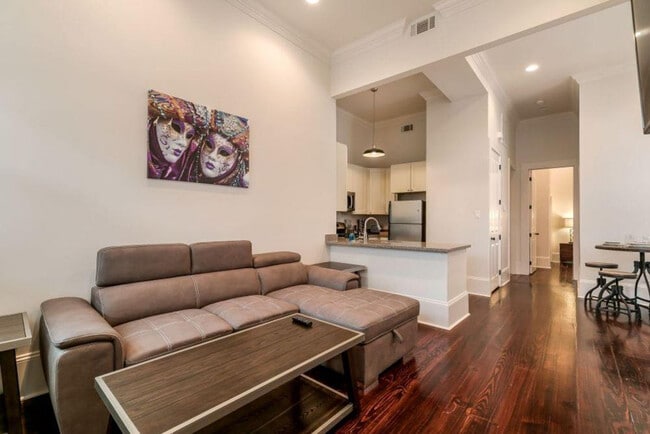 Feel at home in this unique 2-bedroom, 2-bath courtyard flat located in the Residences du Carondelet, built in the style of traditional Garden District cottages. Situated on the first floor with a couple of stairs to climb, this apartment offers a kitchen, living, and dining area, with access directly from the courtyard. This modern space features a fully stocked chef’s kitchen with stainless steel appliances, hardwood floors, large windows with plenty of natural light, and modern bathrooms with tiles and bathtubs. The 2 bedrooms and 2 baths are set-up in an en-suite floor plan, with both bathrooms accessed through the bedrooms. Enjoy access to a shared pool. A high chair and Pack 'n Play are available upon request. Located one block off St. Charles Street, this apartment is adjacent to everything the Garden District offers. Residences du Carondelet sits within one block of St. Charles Street Car Lines, offering easy access to Mid-City, City Park, the Central Business District, the universities, and the Carrollton neighborhood. The French Quarter is a 15-minute walk or a short ride away, and the Superdome and Smoothie King Center are also easily accessible. Enjoy a short walk to great establishments like Emeril’s Delmonico, Lula Restaurant Distillery, and Mr. Ed’s Seafood & Oyster House. House parties and illegal substances are strictly prohibited and grounds for immediate eviction. Violators will be charged a $500 fine. Renters who exceed the maximum occupancy limit and falsify occupancy information at the time of reservation are subject to eviction. Violators will be charged a $200 - $500 fine. Smoking is prohibited in the apartment and on the balcony, and any violation of the smoking policy will incur a $250 fine plus the cleaning costs necessary to remove smoke odors. Pets are not allowed, and violation of this policy may result in a $500 fine plus cleaning expenses. Quiet hours are observed from 9 pm to 8 am, and violators will be charged a $200 fine. Check-in time is any time after 4 pm, and check-out time is any time before 10 am. Gatherings of more than 4 people including both overnight guests and visitors are not allowed and may be subject to eviction. Extra guests and visitors are not permitted without management consent. The number of overnight guests cannot exceed the maximum occupancy. Guests residing within a 100-mile radius are required to contact the partner before booking. For same-day late check-ins, you need to get the partner's approval before booking. The residence has no dedicated parking. Only street parking is available on a first-come-first-serve basis. [SI]