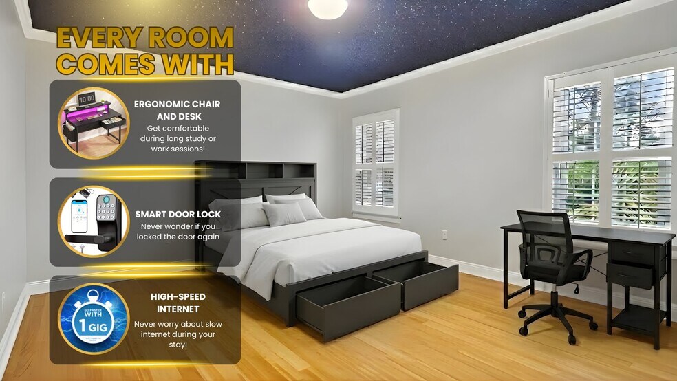 All-inclusive: Utilities, high-speed Wi-Fi (enough to binge your favorite streaming TV shows), lawn care, professional cleaning services included. (For an additional fee you can even have your room included.)