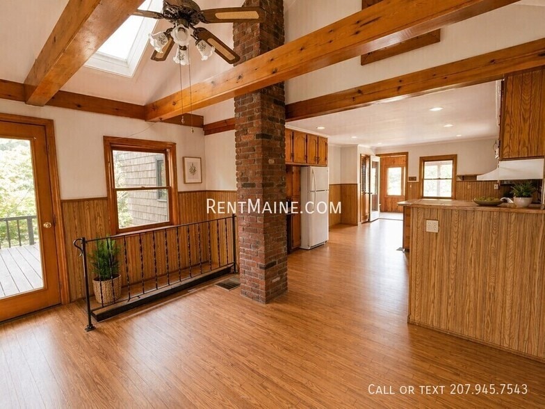 The home features a wrap-around porch perfect for taking in Maine’s seasons, including a large enclosed section that opens directly into a spacious eat-in kitchen. Inside, you’ll find a bright, functional layout with a mix of rustic charm and updated finishes throughout.