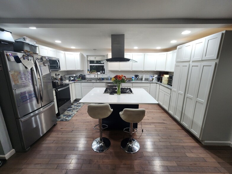 This spacious, move-in-ready home features modern updates throughout, including granite countertops, a large kitchen island with propane cooktop, and ample cabinet storage with soft-close doors and drawers.