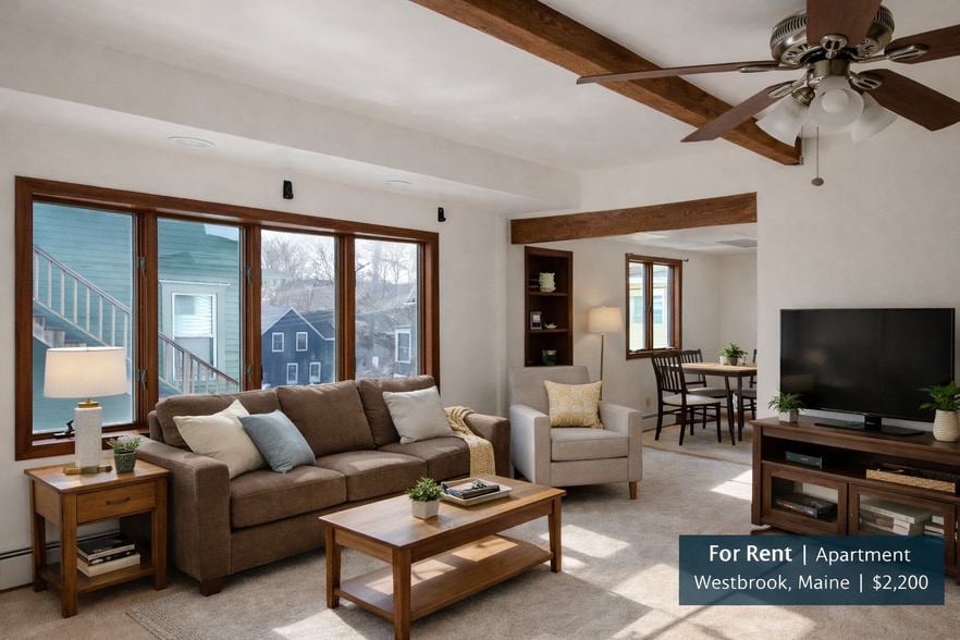 Well cared for, spacious 3 bedroom, 1 bathroom first-floor apartment (1,287 sq ft) available in a well-maintained owner-occupied two-unit home in the Frenchtown area of Westbrook. Updated electrical (and electrician separated), updated plumbing, well insulated with 2 inch exterior insulation as well as blown in and rolled. 8+ inches blown in in most ceilings. Newer oil tank and boiler. The apartment has been recently updated with freshly painted walls and ceilings, new ceiling fans, Armstrong tile flooring, luxury carpet with waterproof backing, and updated bathroom fixtures including an extra-tall toilet. The living room features exposed beams, a brick hearth, large windows for natural light, and built-in shelving and storage. The kitchen includes dishwasher, electric 5 burner range, refrigerator, and abundant cabinet space. The exterior of the home has 2 inch insulation board covering it and rolled and blown insulation in the walls. The ceilings generally have 8-10 inches of insulation in them, Modern updated electrical to whole house. Very efficient replacement boiler. Paved driveway. Apartment Features 3 Bedrooms / 1 Bathroom 1,287 sq ft first-floor apartment Newly painted interior Armstrong tile flooring and luxury carpet New ceiling fans throughout Large living room with exposed beams and brick hearth Built-in shelving and storage Kitchen with dishwasher and full appliances Washer/dryer area available Two off-street parking spaces Owner-occupied duplex Quiet residential neighborhood Quiet residential neighborhood 2 Car Parking not trucks or large vehicles Convenient location close to downtown Westbrook, shopping, restaurants, and easy access to Portland. Rent: $2000 per month Security Deposit: $4000 Convenient location close to downtown Westbrook, shopping, restaurants, and easy access to Portland. Final applicant(s) may be required to pay $49 dollar screening fee. Owner pays water and sewer.