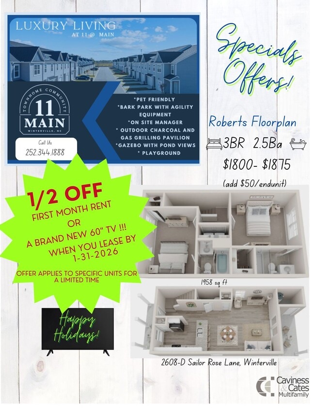 3 BEDS, 2.5 BATHS$2,1954410 Marthas Vlg Ln