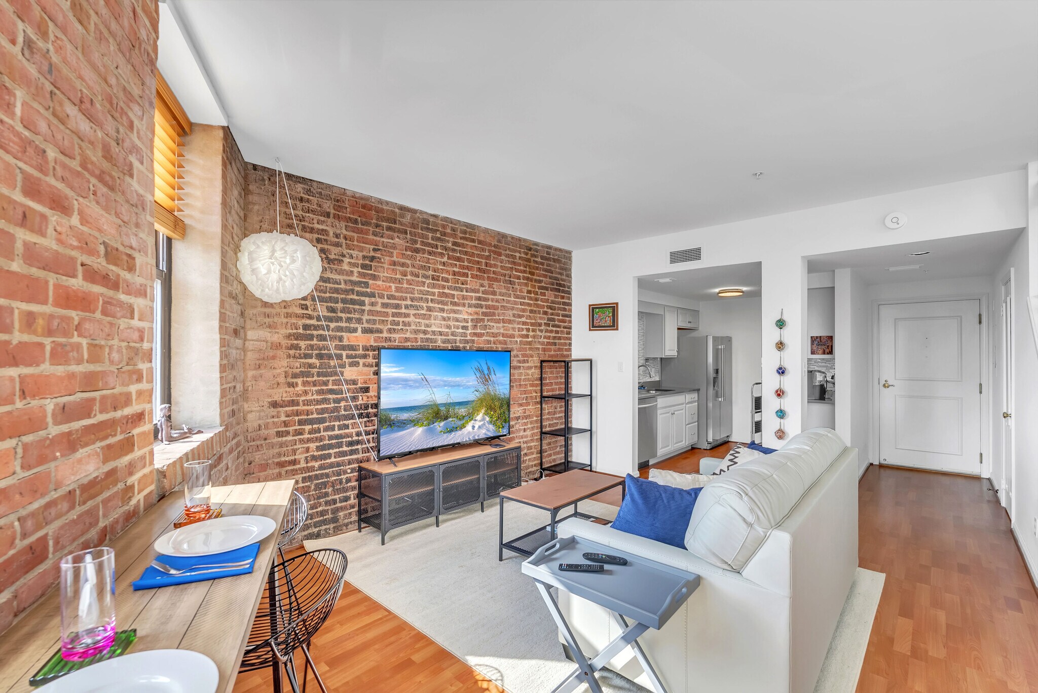 Downstairs living room looking toward the kitchen.