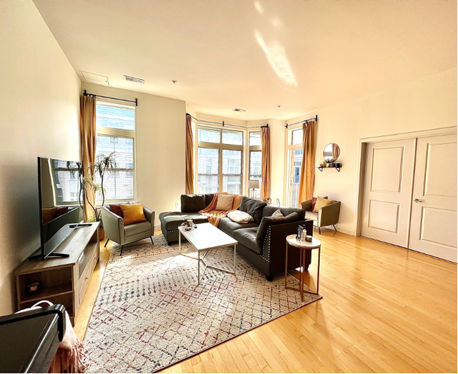 Large 1 bedroom condo, PERFECT for a couple, includes; - One garage parking spot (personal spot) available for rent ($200 monthly additional) - Gym in building included - Washer/Dryer in unit along with central A/C and Heat - Balcony overlooking a landscaped interior courtyard. - 2 closets, dual vanity bath w/dual access off foyer. - One large storage unit included. - Amazon Locker Delivery Boxes in lobby - Starbucks, Chipotle, Subway and other retail on ground floor, Amtrak train station is 2 blocks away. - Potential for renting a second garage parking spot if needed.