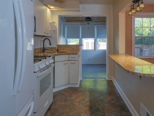 Kitchen: Gas stove, dishwasher and microwave with a deep stainless sink.