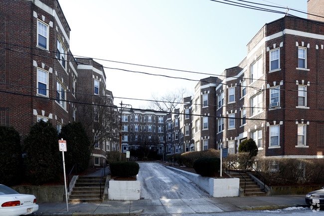 Lorraine Terrace is a a large apartment complex at approximately 153 Kelton St in Allston.