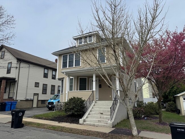 Set on a quiet side street near Waverley Square,this second-floor rental offers polished,well-designed living with an elevated feel. At 12 Chestnut St. in Belmont,the separate entrance and wide stairwell lead to a bright main level with hardwood floors,recessed lighting,high ceilings,and an open layout that connects the living area to the kitchen. The kitchen stands out with dark cabinetry,stone counters,stainless steel appliances,a tiled backsplash,and an oversized peninsula with seating. Both bedrooms are generously sized,including a primary suite with its own full bath,glass shower,and modern vanity. A second full bath with white tile and a tub adds flexibility. The layout also includes in-unit laundry,a dedicated office space,and a separate sunroom for bonus seasonal room. Additional features include central cooling,efficient heating and hot water,replacement windows,shared patio space,and a driveway with parking for up to three cars. Available 5/15. MLS ID 73503701