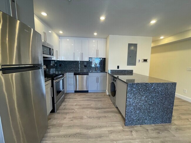 FURNSIHED Renovated spacious studio with tons of natural light! Moments from Boston University. Granite and stainless full kitchen,large bathroom with glass shower,and brand new combo washer/dryer in unit! Hardwood floors,central air,recessed lighting. Elevator secure building. T picks up right across the street. Tons of restaurants,bars and shops right at your footsteps. Cats allowed. MLS ID 73506562