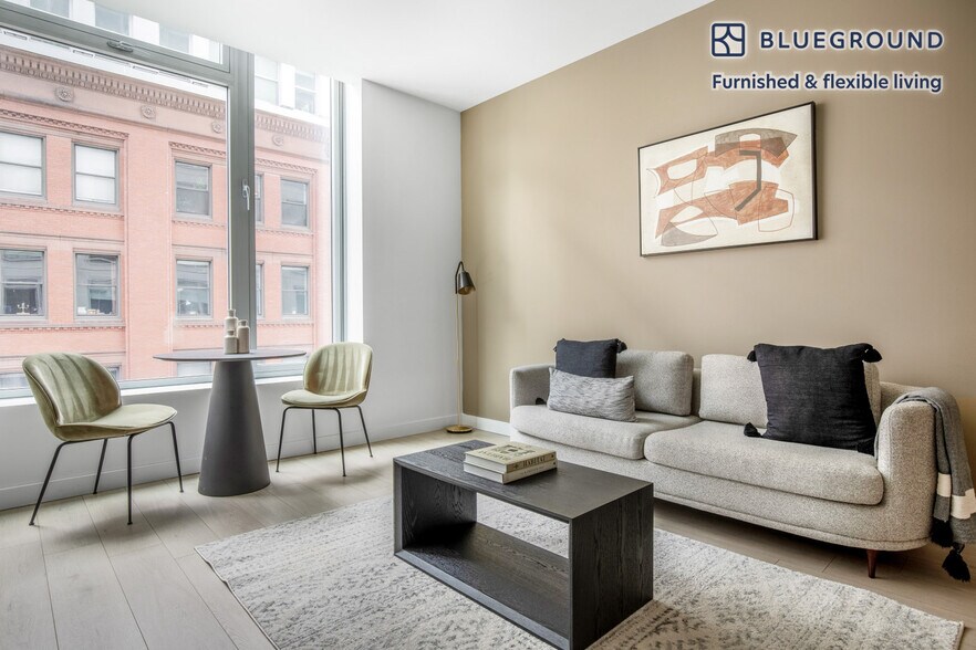 Discover the best of Boston, with this one bedroom apartment in Chinatown with views over the city. It’ll be easy to simply show up and start living in this contemporary furnished apartment with its fully equipped kitchen, spacious living room, and our dedicated, on-the-ground support. (ID #BOS845) The advertised rate of $4,555/month is the lowest available price, based on a 12 month(s) stay with a move-in date of April 19, 2026. Rates vary depending on the duration of stay, season, and other parameters. For exact pricing and additional pricing components, please visit our website and enter your desired move-in and move-out dates. The rate is applicable when billed upfront; it can be higher if billed in multiple payments. Brokers are welcome to reach out. Were you looking for an unfurnished lease? Try Blueground instead and upgrade from unfurnished to furnished living: - Furnished at rates comparable to unfurnished - No setup or furniture costs - save thousands - Move-in ready - save time, just bring your suitcase Designed with you in mind As with any Blueground apartment, you’ll find a thoughtfully designed space complete with beautiful furniture and a fully equipped kitchen in this one bedroom property. And, thanks to our superior quality mattresses, fully stocked linens, and towels, you can relax knowing you’ll always feel comfortably at home. When you’re ready for some fun, you can take in the Boston vibes or bring the entertainment to you with the premium wireless speaker or smart TV. This apartment also offers in-apartment laundry. Sleeping arrangements Queen Bed, 63in/160cm Amenities Building amenities unique to this one bedroom apartment include an on-site: - Dryer - Elevator - Washing machine - Lounge Arrival and ongoing support The entire apartment is yours to enjoy! Throughout your stay, you’ll have access to our Client Experience team through the Blueground App. You can schedule additional cleanings, submit maintenance requests, and view our neighborhood recommendations with just a few taps. We’ll share all details upon confirmation of your stay. Other things to note Building amenities may have an extra cost. This Blueground apartment has flexible lease options, allowing you to book it for one month, a year, or more. We take great pride in ensuring every photo displayed is shot in our own units with our actual furnishings. That said, we regularly refresh our decor and furniture arrangement, which may differ from what’s pictured. [SI]
