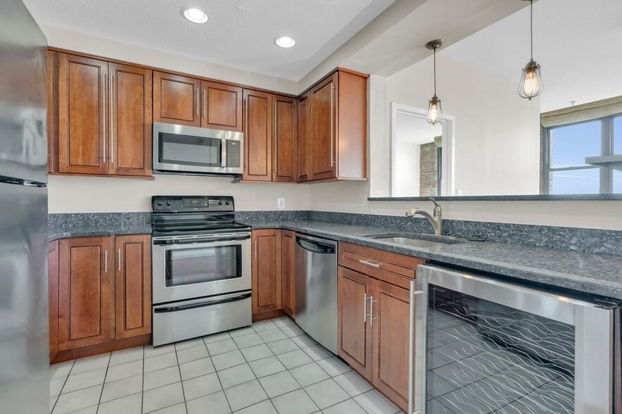 Available Now! Don't miss out on this exceptional opportunity to rent in the Gumball Factory Condominiums! Step in to this to this sun drenched, south-west facing two bed, two bathroom home. Take in the stunning views of East Boston and Downtown through the large factory style windows that are throughout this home. Updated kitchen with granite countertops, stainless steel appliances and wine fridge. The bedrooms are thoughtfully situated on the opposite sides of the condo providing privacy. The spacious primary bedroom boasts an en-suite bath while the second bedroom has convenient access to a full bathroom located just outside it's door. This home is equipped with modern amenities such as in-unit washer and dryer and central air. You'll enjoy the convenience of 1 deeded parking space. Heat and hot water included. This location is a commuter’s dream just steps to Maverick station providing easy access to downtown. 73173 474
