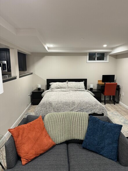 Large Studio Apt w/ Full Kitchen & Bath + Parking! Studio Apt with Gorgeous Kitchen and Bath in prime Boston location near Boston College, Harvard and BU. Great living area/bedroom space, hotel style bathroom, and a fantastic kitchen. The apartment is a fully permitted ADU with hardwired smokes/carbon monoxide, sprinkler, and a fire alarm system. It’s a great place to stay with easy access to Boston colleges, world-class hospitals and healthcare facilities and Downtown Boston. The apartment is 0.3 miles from BC and only 1-2 miles from Harvard University and Boston University. Close to public transportation and very quick to downtown Boston. Both Buses and Green Line T are a short walk from the house. Brighton is a very safe and comfortable area with many local shops, eateries and restaurants. Some of the best international cuisine, night life and live music can be found in Allston right down the street. This Apartment includes: * 50in flat screen HDTV with all streaming options available to login *Small couch and footrest * Stainless steel appliances and fully furnished kitchen with high-end cookware and utensils * Fully furnished bedroom with brand new queen bed, dresser, full length mirror, night stands, desk, and closet. * Off Street Parking * No Broker Fee