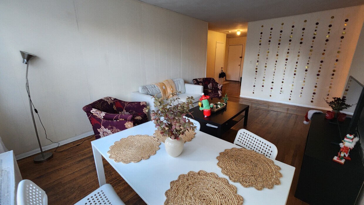 Eat-in kitchen features dark wood cabinets, granite countertops and new appliances + pentry. Foyer and a coat closet when you come in. Spacious living. Very spacious bedrooms that will fit comfortably Queen size beds, desks and dressers or other furniture. Bathroom has a Tub/Shower.