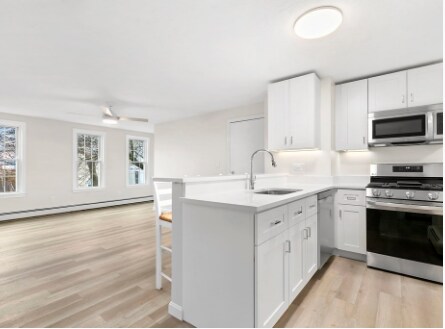 Available NOW. No broker fee due to listing agent! Totally renovated 3 bedroom in Southie's prime location. Brand new kitchen with new stainless steel appliances, gas cooking, ice maker and filtered water and white quartz countertops. Lighting under cabinets and breakfast bar. New floors throughout - no carpets! 3 equal sized bedrooms with great closet space and recessed lighting! Private deck off the back. Full size washer and dryer and private storage space. 1 block from East and West Broadway's best restaurants and bus to T. Gas heat. Option to rent garage space in September. No pets. 720+ credit score to be considered. First / Last / Security due at lease signing. 73069 001