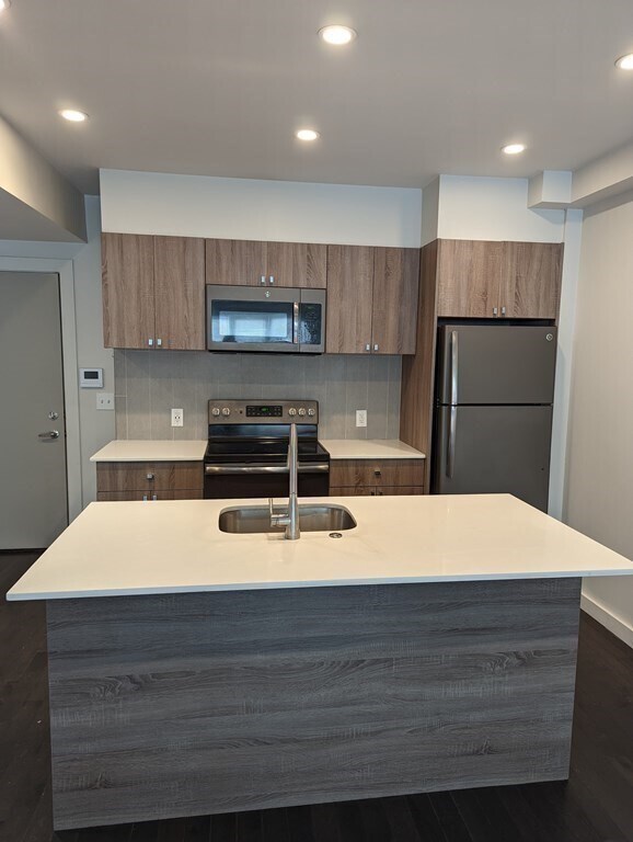 Jamaica Plain luxury 1 bedroom available now! Elevator, professionally managed building with common roof deck, and storage available for rent. Wood floors throughout. Large living room with space for dining and home office. Open kitchen, stainless appliances, dishwasher, lots of cabinet space. Laundry in unit. Central air! Easy access to the T. Sorry, no dogs.