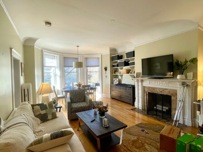Charming One-Bedroom Apartment with Gorgeous Views of Commonwealth Ave – Back Bay. This bright and inviting one-bedroom apartment offers stunning views of Commonwealth Avenue in the heart of Back Bay. Featuring a modern, well-equipped kitchen, hardwood floors throughout, and a cozy decorative fireplace, this space exudes warmth and style. The spacious bedroom boasts beautiful stained glass windows, adding a touch of character and elegance. Enjoy abundant natural light through sunny exposures, creating a welcoming atmosphere. The professionally managed building offers convenient amenities such as multiple elevators and a laundry room on every floor. Heat and hot water are included in the rent, and extra storage space is available for your convenience. Available June 1. Broker Fee - 1 month With questions or to schedule a showing please call iana