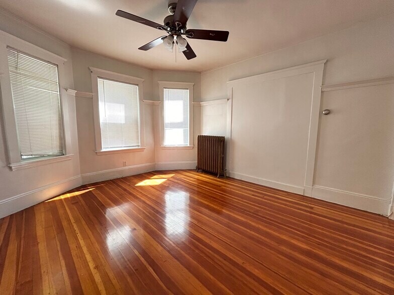 Spacious 3 bed 1 bath with ample lighting and spacious. Each bedroom comes with closet space and can easily fit a queen bed and more. This space has hardwood floor throughout. The kitchen has all the amenities you want with ample amount of storage space and a walk in pantry. This unit comes with two private porches and a parking space included. Additional on street parking is available as well for free!