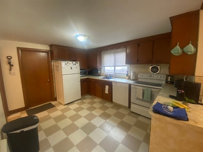 First floor of 2-fam, very bright & sunny apartment w/ gleaming hardwood floors throughout, fireplace, large living room, separate dining room, 3 bedrooms, & great closet space. Washer/dryer in basement. Very nice outdoor patio. 2 tandem off-street parking spaces included. Moments from the busline and commuter rail and quick drive to the free Longwood parking lot & shuttle. Pet negotiable w/ landl ord approval.
