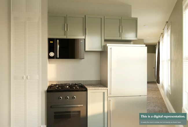 This 1 bedroom can accommodate a full-size bed. Other features of this apartment are paid WiFi, smoke-free, guarantors allowed, electric heating, couples friendly, living area, hardwood floors, microwave, oven, decorative fireplace refrigerator, and TV. 305384 395