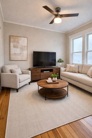Renovated 3BR/2BA + Large Balcony | 1,300+ Sq Ft | Available 4/1 | Metropolitan Hill Available 4/1! Sun-drenched and beautifully renovated 3-bedroom, 2-bath condo in Roslindale's highly desirable Metropolitan Hill neighborhood. Offering 1,300+ sq ft of living space, this home features hardwood floors, high ceilings, and abundant natural light throughout. The thoughtfully designed layout includes a spacious living room, separate dining room, and a large eat-in kitchen with granite countertops, brand-new appliances, gas stove, dishwasher, and ample cabinetry perfect for both everyday living and entertaining Enjoy outdoor living with a private balcony offering scenic city views, plus access to a large shared yard. Additional features: * In-unit laundry * 2 updated bathrooms * Private basement storage * Private porch + shared yard * Generous closet and storage space Located on a quiet residential street just minutes from Roslindale Village, you'll have easy access to local shops, restaurants, cafes, and the commuter rail for a quick trip into downtown Boston. Nearby parks and green space including the Arnold Arboretum add to the neighborhood charm, making this an ideal spot for comfortable city living with a true neighborhood feel. Some photos are virtually staged to show potential layout and use of space! -Rent Fee Includes Water, Sewer, snow removal and landscaping -Tenants pay for utilities. -Garage parking space available for +$150/month each. -Looking for first, last, and security. -No pets, no smoking.