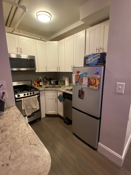 Apartment has hardwood floors and high ceilings. Also features a kitchen with full appliances and microwave. Concierge, elevator, and laundry in the building. Located just a few minutes' walk from Northeastern, Mass Ave, and the Green Line.