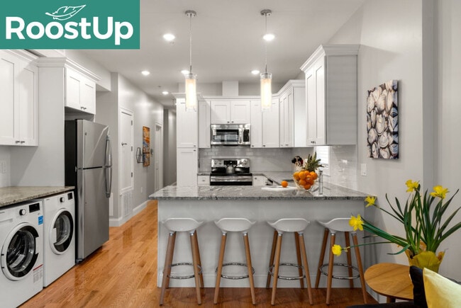 No broker fee! Only last month deposit needed. RoostUp is offering a beautifully renovated private bedroom with ensuite bath in South Boston. Less than a 10 minute walk to the MBTA 9 and 7 Buses to Downtown Boston in a 5 bedroom/4 bath apartment. Check out RoostUp's 100+reviews averaging 4.8-stars on Google and Facebook. Completely furnished all-inclusive concept from RoostUp. Fully-equipped kitchen included with granite countertops, new appliances and 4K Smart TV. RoostUp amenities include all utilities, high-speed WiFi, in-unit laundry, central air, and bi-weekly cleaning. Here's what is included: Furnished private bedroom with private ensuite bath ------------------------------------------------------ - New bed and high quality mattress - Matching dresser with desk, lamp and chair - Full length mirror and coat rack - Custom closet system with built in storage Stocked kitchen and furnished living area ------------------------------------------ - Renovated kitchen with new countertops & stainless steel appliances - Kitchenware, dishes, glassware and flatware - Fully furnished including sofa, chairs, coffee table - 4K Smart TV Utilities & Cleaning ------------------- - All utilities (gas, electric, wifi) - Bi-weekly professional cleaning - 1Gbps WiFi - Keyless smartphone locks - Central A/C - Free in-unit laundry - Weekly trash and recycling removal - Included for one flat monthly fee RoostUp never charges a broker fee or security deposit. Only First and Last Month Rent due at lease signing. Sorry, no pets. The RoostUp application process includes a credit and background screening. International applicants can submit copies of valid passport & visa. Please note there is an application process that includes a credit and background check.