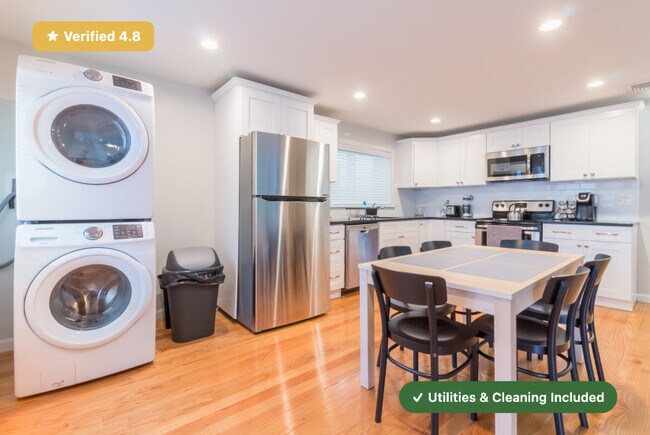 No broker fee! Only last month deposit needed. RoostUp is offering a beautifully renovated private bedroom in East Boston. Less than a 5 minute walk to Orient Heights MBTA Blue Line train station in a 5 bedroom/2 bath apartment. Check out RoostUp's 100+reviews averaging 4.8-stars on Google and Facebook. Completely furnished all-inclusive concept from RoostUp. Fully-equipped kitchen included with granite countertops, new appliances and 4K Smart TV. RoostUp amenities include all utilities, high-speed WiFi, in-unit laundry, central air, and bi-weekly cleaning. Here's what is included: Furnished private bedroom ------------------------------------------------------ - New bed and high quality mattress - Matching dresser with desk, lamp and chair - Full length mirror and coat rack - Full-size closet Stocked kitchen and furnished living area ----------------------------------------- - Renovated kitchen with new countertops & stainless steel appliances - Kitchenware, dishes, glassware and flatware - Fully furnished including sofa, chairs, coffee table - 4K Smart TV Utilities & Cleaning ------------------- - All utilities (gas, electric, wifi) - Bi-weekly professional cleaning - 1Gbps WiFi - Keyless smartphone locks - Central A/C - Free {in-unit} laundry - Weekly trash and recycling removal - Included for one flat monthly fee RoostUp never charges a broker fee or security deposit. Only First and Last Month Rent due at lease signing. Sorry, no pets. The RoostUp application process includes a credit and background screening. International applicants can submit copies of valid passport & visa. Please note there is an application process that includes a credit and background check.