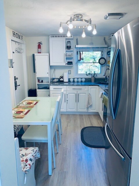 completely renovated ,top floor apartment condo building . granit counter tops ,stainless steal appliances , large eat in kitchen filled with lots of cabinet space , very large bedrooms with big closets , windows all around for natural sunlight , laundry facility's on first floor . one assigned parking space with plenty of guest parking for the second car. 10min or so walk to the commuter rail , weymouth landing is filled with lots of great restaurants and a quaint coffee cafe all in walking distance . tenant pays full broker fee