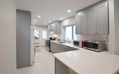 Gorgeous Brookline three bed / three bath. Modern kitchen with stainless steel appliances and quartz counter tops. High ceilings. Gleaming hardwood floors. Exclusive laundry. Short distance to Washington Square. Moments from the Green Line MBTA C&D service.