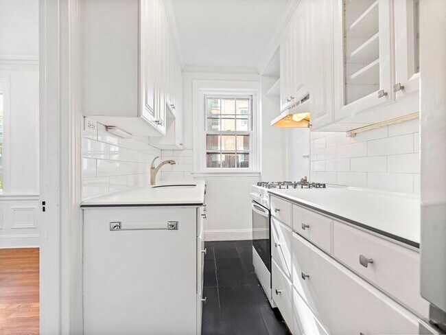 This lovely two-bedroom apartment is in the highly desired Radcliffe neighborhood between Harvard & Porter Squares. Close to many great restaurants, shops, transportation, universities & the Red Line. The apartment is freshly painted, has excellent light, beautiful wood floors, an ornamental fireplace in the living room, high ceilings, & updated appliances (a new refrigerator, dishwasher, and oven). A long hall leads you to a large 6X11 foyer that can serve as an office or a nice reading room. There is a spacious dining room, with a closet and wainscoting adjoining the kitchen. Both bedrooms have windows & beautiful views; the oversized bedroom has two closets and a built-in bookcase & cabinet. There is generous storage space (eight closets) throughout the apartment. In the basement is a shared laundry room, bike storage & assigned storage room. Window Air conditioning is allowed.l 73078 934