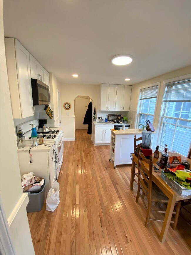 2 bedroom 1 bathroom apartment in a three-family wood framed house on the 1st floor. All hardwood floors. Gets great sun. Modern kitchen and bath. Located in the Cambridgeport Area of Cambridge, 12 minutes to T, Eat in Kitchen with refrigerator and stove. (Reference #122010)