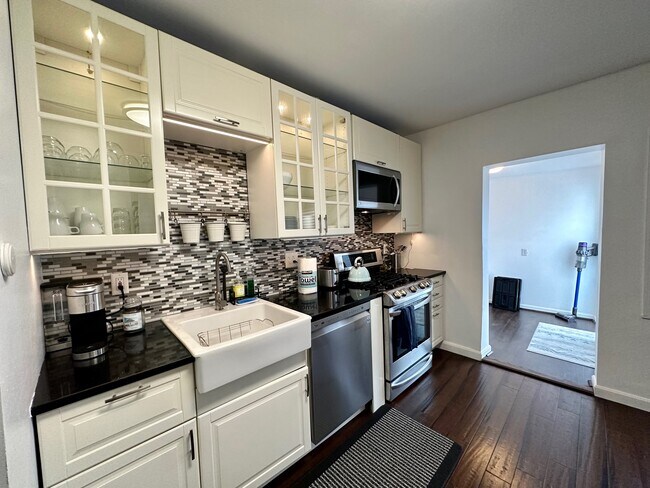 Beautiful fully furnished 3-bedroom singe family home for a SHORT TERM lease! All utilities included. This apartment features three bedrooms, one full and one half bathrooms, living room, large dining room, vinyl deck and so much more! It comes with all utilities included. Modern kitchen sports stainless steel appliances, this includes dishwasher, microwave, refrigerator and garbage disposal. Large private deck is attached to kitchen through an improvised dressing room. Brazilian cherry hardwood floors throughout. Washer and dryer in-unit located in a full basement, where you can also keep large items. Three parking spots included in the rent. Don't miss this unique opportunity! This home is ideal for families, traveling professionals, airport employees and others!