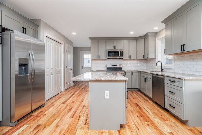 New construction townhouse-style rental offering modern design and quality finishes throughout. This spacious 3-bedroom,2-bath unit features approximately 1,450 sq ft of living space with an open concept layout. The main level includes a bright living room with fireplace and access to a composite deck,oak hardwood flooring,recessed lighting,and is filled with natural light. The chef's kitchen features upgraded cabinets,granite/stone countertops,stainless steel appliances,pantry,and a large center island open to the dining area. A full bathroom is conveniently located on the first floor,while the second floor includes three bedrooms and another full bathroom. Additional features include heat pump heating with A/C,in-unit laundry hookups,mudroom entry,and two assigned off-street parking spaces. Make this stunning new construction apartment yours today!! MLS# 73493356