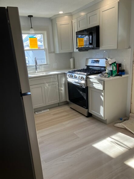 Available March 1st. Be the first to live in this totally renovated first floor duplex apartment! The pictures don't do it justice. This unit has been totally updated: New kitchen and bath, hardwood floors in bedrooms and living room, all new appliances, new floors. The laundry hookups are in the spacious walk-down basement which also affords plenty of storage. The neighborhood is very small and quiet. It is a dead end street. There is a nice backyard directly behind the unit. This is a month-to-month lease intended for terms longer than 12 months if the tenant so desires. No smoking of any kind is allowed. No pet policy. Off-street parking in the driveway. On-street is also available. Tenant pays for heat and electricity. Please complete the application and credit check process prior to scheduling a tour. a tour.