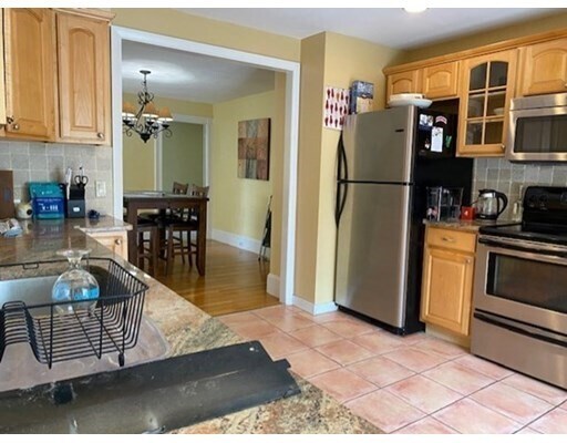 Sunny and bright, second floor, 3 bedroom 1 bath apartment on quiet residential street in Needham heights. Hardwood floors throughout. Stainless steel appliances and granite counter tops, as well as carpeted bedrooms. Built in-wall air conditioner keeps living space cool. Washer and drier hookups in basement. Just around the corner from restaurants, grocery store, CVS, Starbucks, and much much more. Easy access and down the street from major highways and public transportation such as the Commuter rail and busses. Lovely private deck perfect for relaxing and grilling with friends and family. Includes plenty of storage and 1 garage space plus additional parking available in driveway. This lovely unit will not disappoint