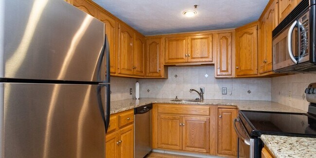 Opportunity is knocking. This 2 bedroom 1 bath corner unit at the coveted Academy Park Condominiums is awaiting its new occupant. It features an open concept living/dining room with exposed brick and beautiful wood flooring. Nicely laid out kitchen with granite counters and stainless steel appliances. Primary bedroom with large walk-in closet. Second bedroom with exposed brick. There is in-unit laundry and a good size coat closet upon entering the unit. The balcony offers amazing views of Blue Hills. The complex grounds are beautiful with all of its green grass and trees, along with a common area to enjoy. The location is superb, minutes to all the restaurant's and shopping that Quincy Center has to offer. Close to public transportation, the express way and Quincy Adams T Station.Listing Provided By: Maria Fabiano Realty