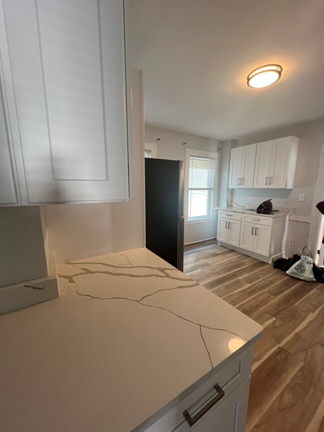 Beautiful 3 bedroom 1 bath all redone new kitchen and bath . Gleaming hardwood floors convienient location . Parking included