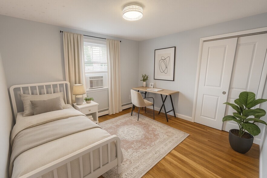 This is a private room on the main floor of of spacious single family house you could be one of 5 total roommies (professional males working in their 20s and 30s). Recently gut renovated home located 5 minutes from Bentley University on a quite residential street with nearby views of downtown Bostons skyline. The home features all new modern and high quality kitchen and bathrooms with new tile and the works. Two floors of living (approx 2200 sq ft) and multiple living rooms, large sunroom, 1/2 acre of front/backyard and small deck area.
