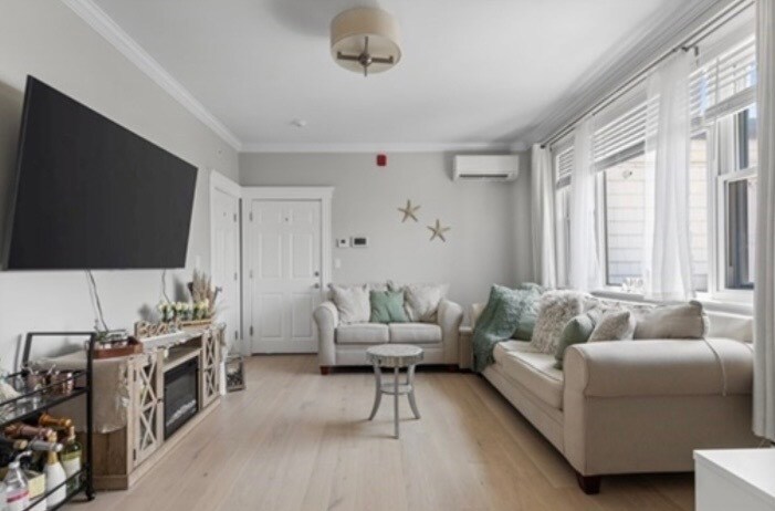 HEAT AND HOT WATER INCLUDED! Welcome to The Cove at 600, a premier condominium community set on the historic grounds of the former Crystal Cove Hotel. This beautifully renovated and freshly painted first-floor unit offers 1 bedroom/2 full baths, delivering the perfect blend of comfort and coastal living. Thoughtfully updated throughout, this home features a modern kitchen w/new stainless appliances, granite, and newer cabinets. A spacious living room showcasing stunning water views that create a peaceful backdrop. The generously sized bedroom fits a king bed, an ensuite bath, and abundant floor-to-ceiling closet space including built in cabinetry for optimal storage. It includes two assigned parking spaces, in unit washer/dryer, mini split A/C, and bike storage. Enjoy the large waterfront private deck while taking in sweeping views of Boston skyline. Steps to the beach, close to Winthrop centers shops, restaurants, and public transportation. Available May 15.