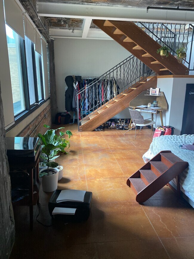 Unique Duplex with industrial look, exposed brick and concrete floors. Kitchen with modern appliances along with living room and half-bathroom on top floor. Bedroom and bathroom are on bottom floor. Great location walking distance from midtown (Little Caesars Arena, whole foods, DSO, DMC, new bars/restaurants...) and downtown (Comerica Park, Ford Field, Fox theater, Fillmore, Campus Martius, bars/restaurants...). Free parking in secure open private lot. Don't hesitate to contact for more information.