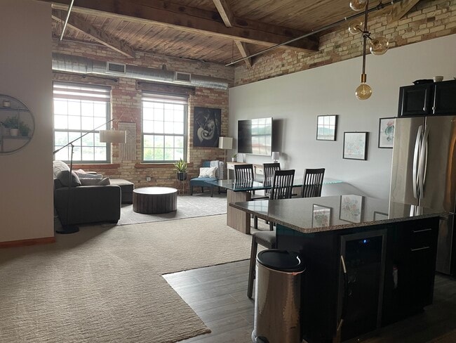 This river facing 990 square foot- one bed/one bath condo is located on the top floor of Boardwalk Condominiums, you'll have access to the community pool and hot tub, 1 covered garage parking space (on same floor as unit, additional spots available with fee), easy access to canal park and beautiful downtown. Within the building there are many amenities including a roof top patio, Grand Rapids City Gym (not included in rent), Brickyard Tavern, Pure Salon and more. The condo is pet friendly with no monthly pet fees. No breed or weight restrictions. In-unit washer and dryer. Rent is $2000/month, utilities not included. Please contact if you'd like to know more or schedule a tour!