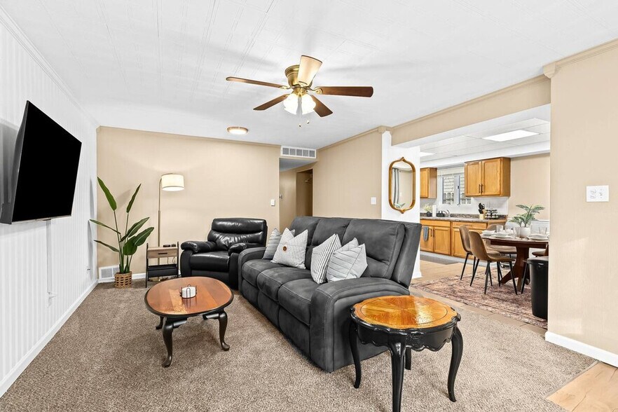 Feel at home in this charming home, the perfect place to relax and unwind. This spacious home features three bedrooms and is located in a residential neighborhood. The kitchen is fully equipped with everything you need to cook your favorite meals. Amenities include smart TVs, high-speed Wi-Fi, and a laundry room with a full-sized washer and dryer, as well as an iron and ironing board. The kitchen features a microwave, stove, oven, toaster, coffee maker, refrigerator/freezer, sink, glasses, silverware, and pots and pans. This unit is pet-friendly, and there is a $150 fee per pet. Located in Hazel Park, this home is conveniently located near the 696 expressway, providing quick access to Metro Detroit. Within 15 minutes, you can reach Downtown Detroit, Royal Oak, or Lake St. Clair. Free parking spots are available for two vehicles on the driveway, with additional street parking in front of the house. A Ring doorbell with a camera is installed at the front door for safety, monitoring only the exterior entryway 24/7. There are no cameras inside the property. Quiet hours are from 9 PM to 8 AM daily, and noise complaints will incur a $250 fine. There is a $500 fine for any non-approved pets. Smoking is only allowed outside, and there is a $1000 fine for smoking inside the unit. A $1000 fine will be charged for non approved pets. A $250 fee will be charged if debris is left behind after your stay. An excessive cleaning fee of up to $250 may apply for dirt, mud, or stains on floors/rugs. A $250 fee will be charged if you check out after 11:15 AM. Please do not move furniture (tables, chairs, beds, nightstands, rugs, etc.). There is a $250 fine if furniture is moved from its original position. Includes high-speed Wi-Fi. [SI]
