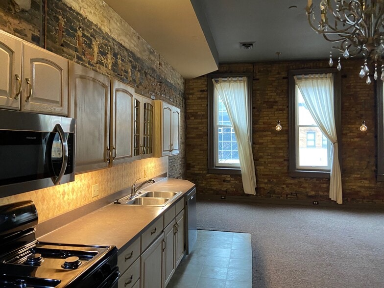 Awesome property in downtown Jackson. Overlooks Michigan Ave. Belenote Restaurant is directly across the street. Electricity, Heat and Water are included. Does not include Internet or Cable. Exposed brick of 1880's buinding. New Air Conditioning, almost new refridgerator. 1300 square feet. Photos shot main room, bathroom and centrally located bathroom. Building has a retail store on first floor and total of (3) apartments on top two floors. LEt me know what questions you have. Thanks, Travis Rental Electical/Heat/AC/Water included in price. Cable/Internet not included but available. Parking is not included, but multiple lots in area.
